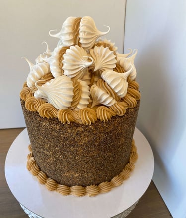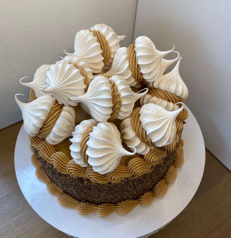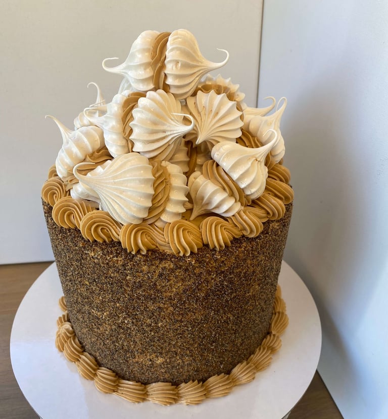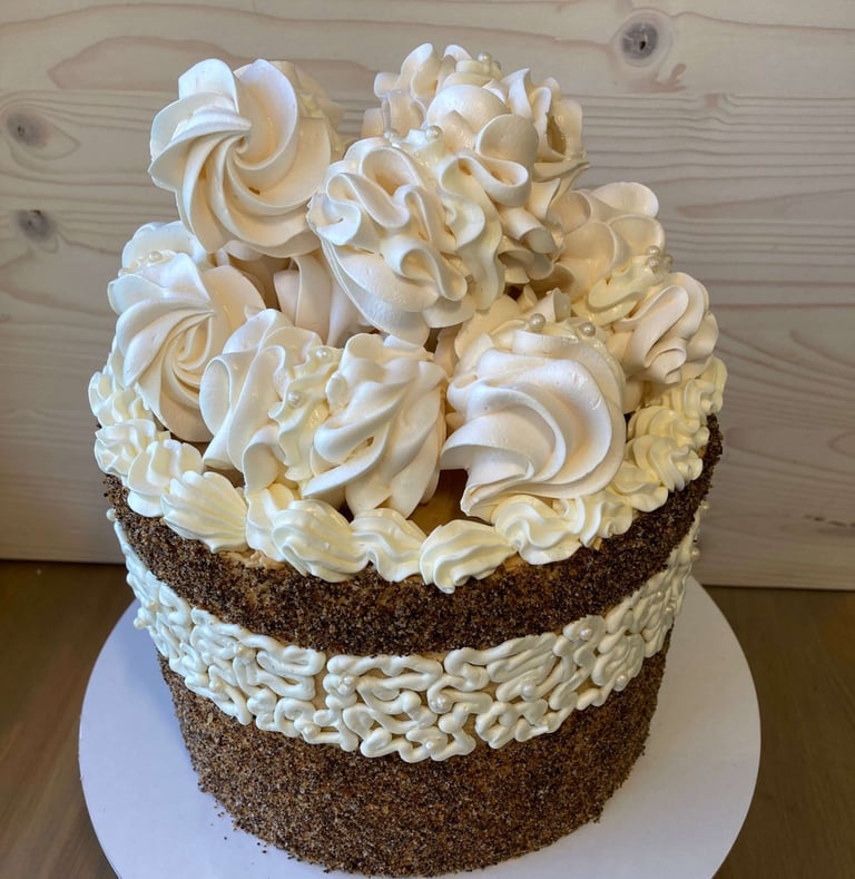 sudėtis Aguonų biskvitai, morengai ir sviestinis karamelinis kavos kremas.Svoris Nuo 2 kgKaina 23€/kg